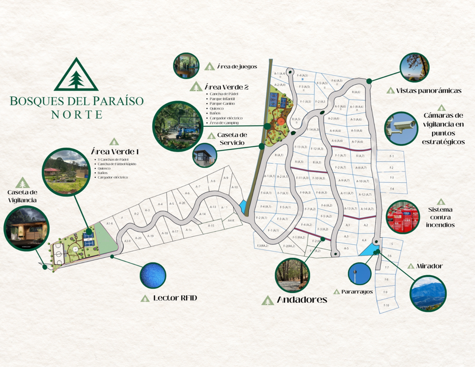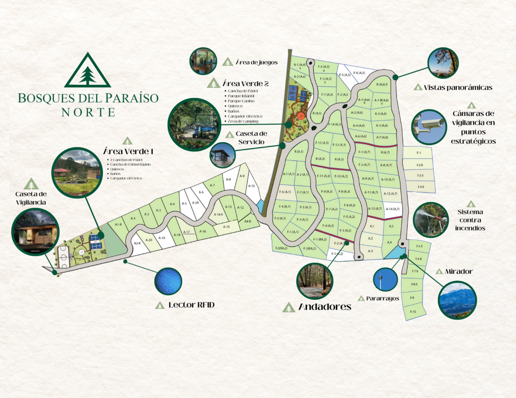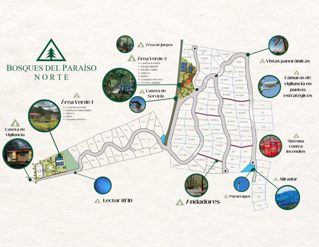 En Bosques del Paraíso Norte la estética es outdoor. Esto se refleja en la arquitectura que utiliza materiales naturales como madera, integración con el entorno boscoso y conexión con la naturaleza.